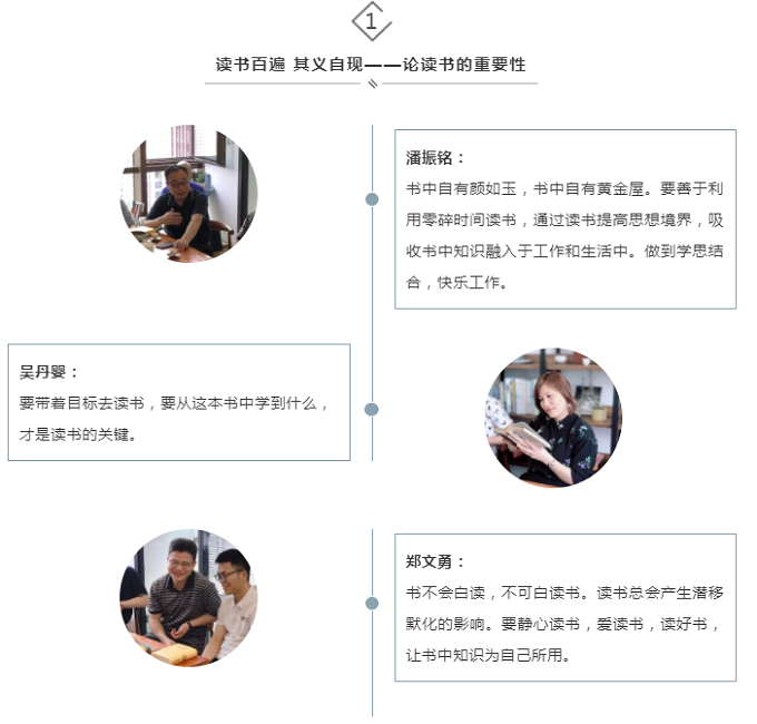 集團公司黨委副書記、紀委書記、工會主席潘振銘,黨委委員、總會計師吳丹嬰,黨委委員、總工程師鄭文勇與干部職工共聚一堂分享讀書心得。